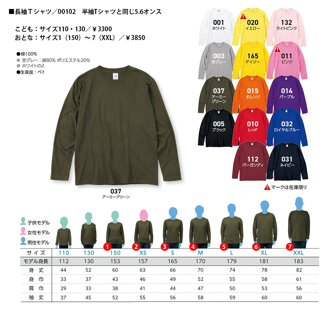 Tシャツ/カラーバリエーション